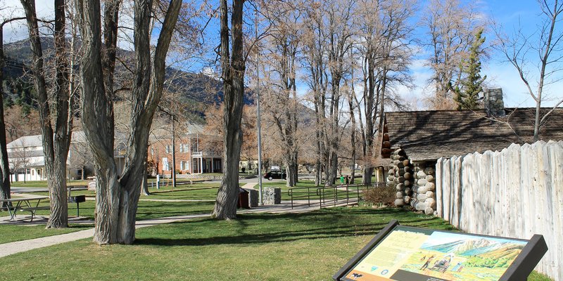 Visitors can explore a replica of the original trading post, a museum with pioneer artifacts, picnic areas, and scenic grounds in historic Genoa.