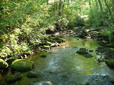 EasyA scenic loop trail through mixed hardwood forest, featuring gentle terrain and views of small streams.